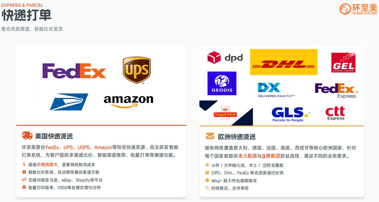 目前,像环至美这样的物流服务商,已接入FedEx、UPS、USPS、UniUni、GoFo等多个快递的合规折扣账号,渠道价格透明,操作简单,适合中小卖家日常发货需求。不用囤货、不设最低起订量,按需使用即可。